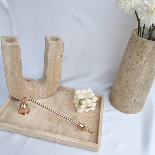 Travertine Tray and Candle Holder Set-Save rs. 3000